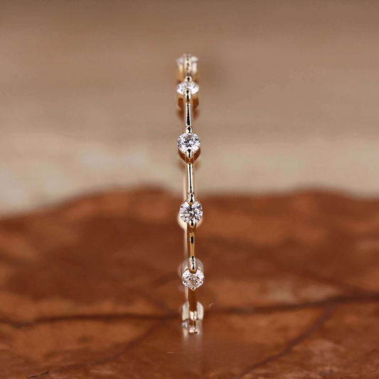 • Minimalist Round Lab Grown Diamond Wedding Band, Half Eternity Band