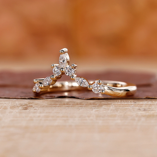 • Marquise Shaped Lab-Created Diamond Ring – Tiara Style Wedding Band