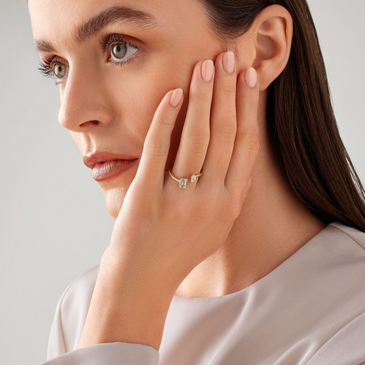 • 0.88 Carat TW Two Stone Emerald and Pear Cut Laboratory-Grown Diamond Engagement Ring